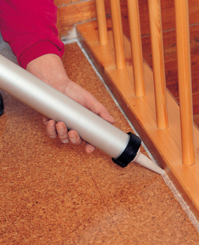 La superficie deve essere solida, portante, pulita, asciutta e priva di grasso e polvere. Per migliorare l'adesione su superfici assorbenti come calcestruzzo, pietra ecc., si raccomanda un pretrattamento delle superfici adesive con primer. L'adesione e la compatibilità con materie plastiche devono essere testate sulla base di ogni singolo soggetto. Per l'applicazione su superfici rivestite, testare la compatibilità in anticipo. Inserire il sughero a dispersione spray nella pistola a pressione manuale (articolo n. 0891 400 600) ed esercitare una pressione per far fuoriuscire il sughero uniformemente sui bordi dei giunti. I giunti devono essere riempiti in maniera uniforme. Utilizzare i contenitori aperti nel più breve tempo possibile. Levigare subito la superficie con una spatola umida, un attrezzo di levigatura, una piallatrice o con le dita. Una volta completamente indurito, il sughero a dispersione spray deve essere protetto dalle intemperie con un sigillante elastico. È anche necessaria la sigillatura con un isolante elastico per giunti sul lato della camera.